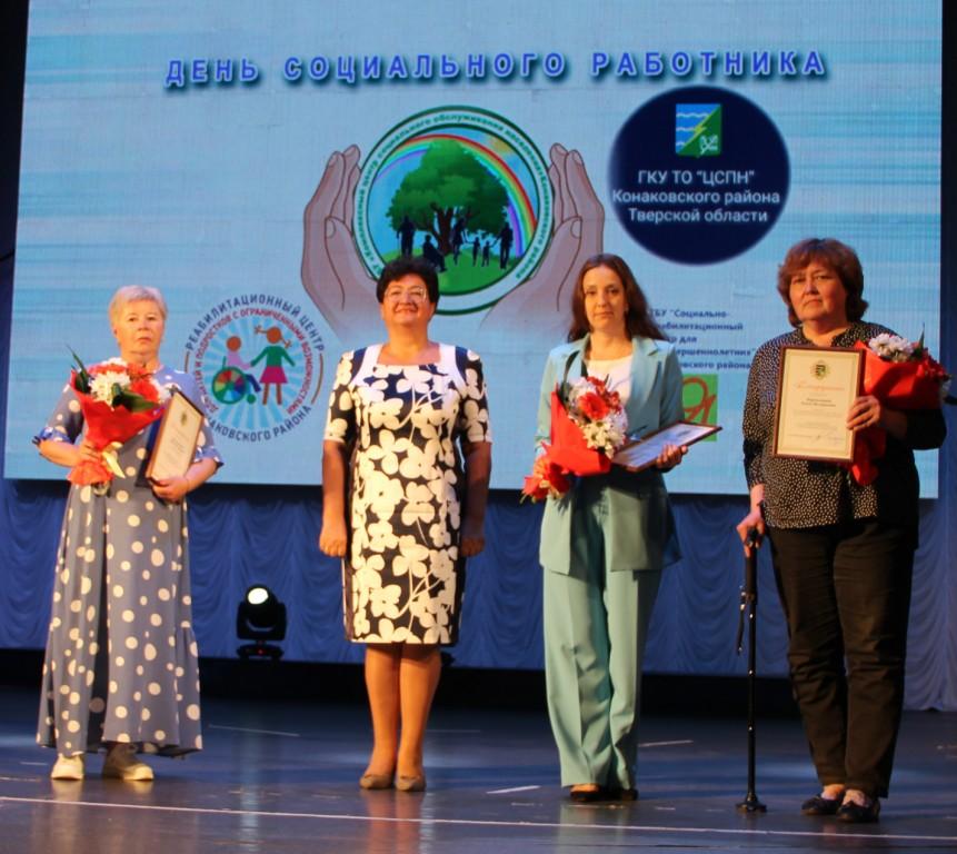 Мероприятие, посвященное Дню социального работника, прошло 9 июня 2023 года во Дворце культуры «Современник». В фойе дворца культуры разместилась выставка декоративно –прикладного творчества сотрудников и специалистов ГБУ «КЦСОН» Конаковского района. Вышитые и нарисованные картины, поделки, изготовленные своими руками, порадовали глаз и создали праздничное настроение. По традиции в зале собрались люди, у которых особая миссия – помогать нуждающимся гражданам, беря их под покров социальной защиты. В этот день прозвучали слова благодарности тем, кто своим добросовестным трудом заслужил глубокое уважение подопечных, признание своих коллег. Достойные награды получили сотрудники и специалисты всех организаций, относящихся к системе социальной защиты населения Конаковского района. Они были поощрены благодарностями от Министерства социальной защиты населения, главы Конаковского района О. В. Лобановского, временно исполняющего обязанности главы города Конаково Д. Н. Колупанского, директора ГКУ ТО «ЦСПН» Конаковского района А. В. Колпакова, директора ГБУ «КЦСОН» Конаковского района О. В. Поздняковой, директора ГБУ «Реабилитационный центр для детей с ограниченными возможностями» Конаковского района Н. В. Колпаковой. Слова благодарности сотрудникам социальной защиты высказала Заместитель Главы администрации по социальной политике А. А. Бородина, вручив приветственные адреса от главы Конаковского района директорам учреждений. Со сцены, также, прозвучали слова благодарности о совместном сотрудничестве от Председателя попечительского совета ГБУ «КЦСОН» Конаковского района, председателя совета предпринимателей Е. А. Булыга и переданы небольшие подарки для подопечных центра от сообщества «Крафт – мастера», чья выставка была представлена перед входом в зрительный зал. Церемонию награждения завершил творческий подарок от коллектива МБУ РМЦ ДК «Современник».