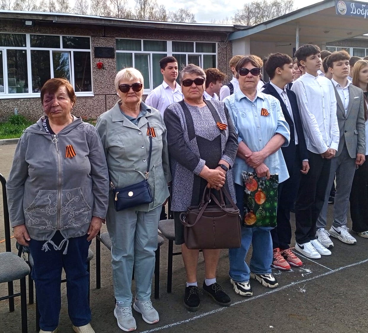 Участницы группы «Рукоделие» Университета третьего возраста «Комплексного центра социального обслуживания населения» Конаковского муниципального округа 21 апреля 2025 года приняли участие в торжественной линейке Гимназии №5 г. Конаково, посвященной открытию Года защитника Отечества, 80-летию Победы в Великой Отечественной войне и борьбе с нацизмом. 4 апреля 2025 года они под руководством волонтера центра, учителя Гимназии № 5 О. Н. Степаненко вписали имена своих родных золотыми буквами в красный квадрат, тем самым став участниками патриотической акции «Полотно Победы». И вот сегодня «Полотно Победы» было представлено перед учащимися и гостями на торжественной линейке, а 9 Мая «Полотно Победы» пройдет в праздничной колонне по улицам нашего города! Минутой молчания присутствующие почтили память защитников Отечества, отдавших свои жизни во имя мира, свободы будущих поколений.